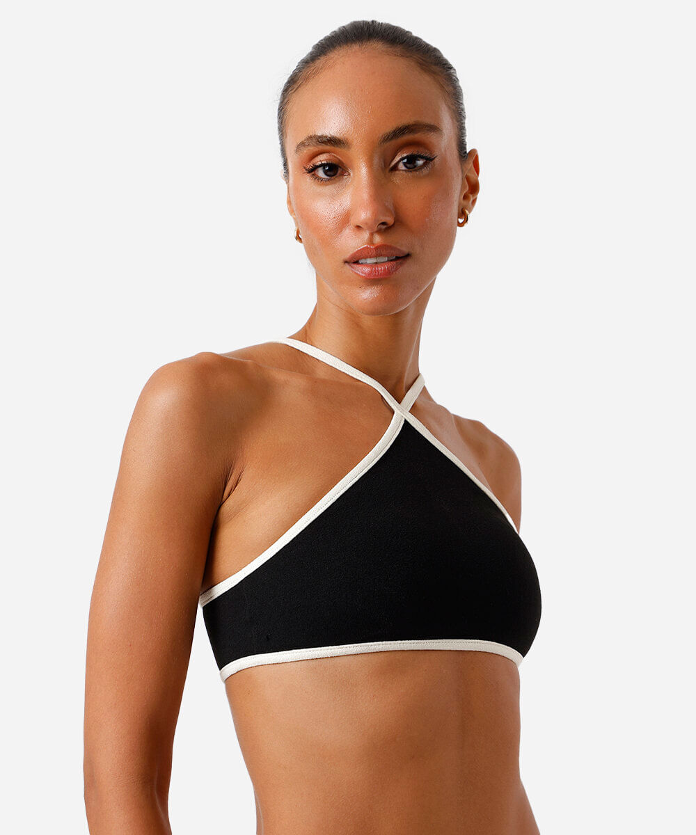 biquíni top halterneck feminino bicolor preto