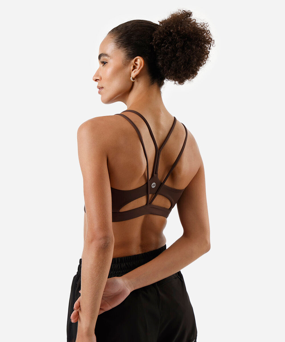 top feminino esportivo ace com recorte marrom