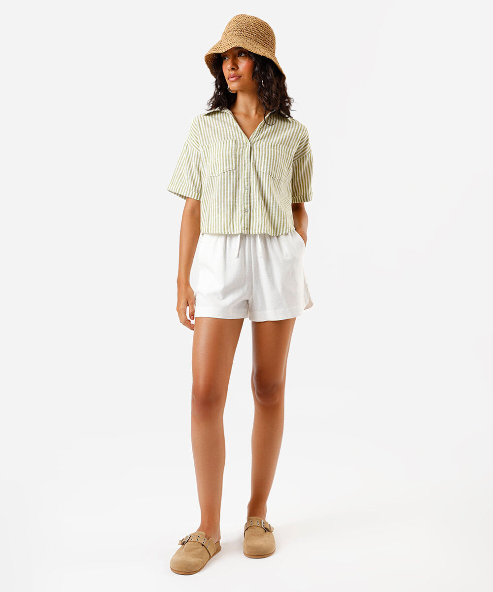 short feminino com linho cós elástico - off white