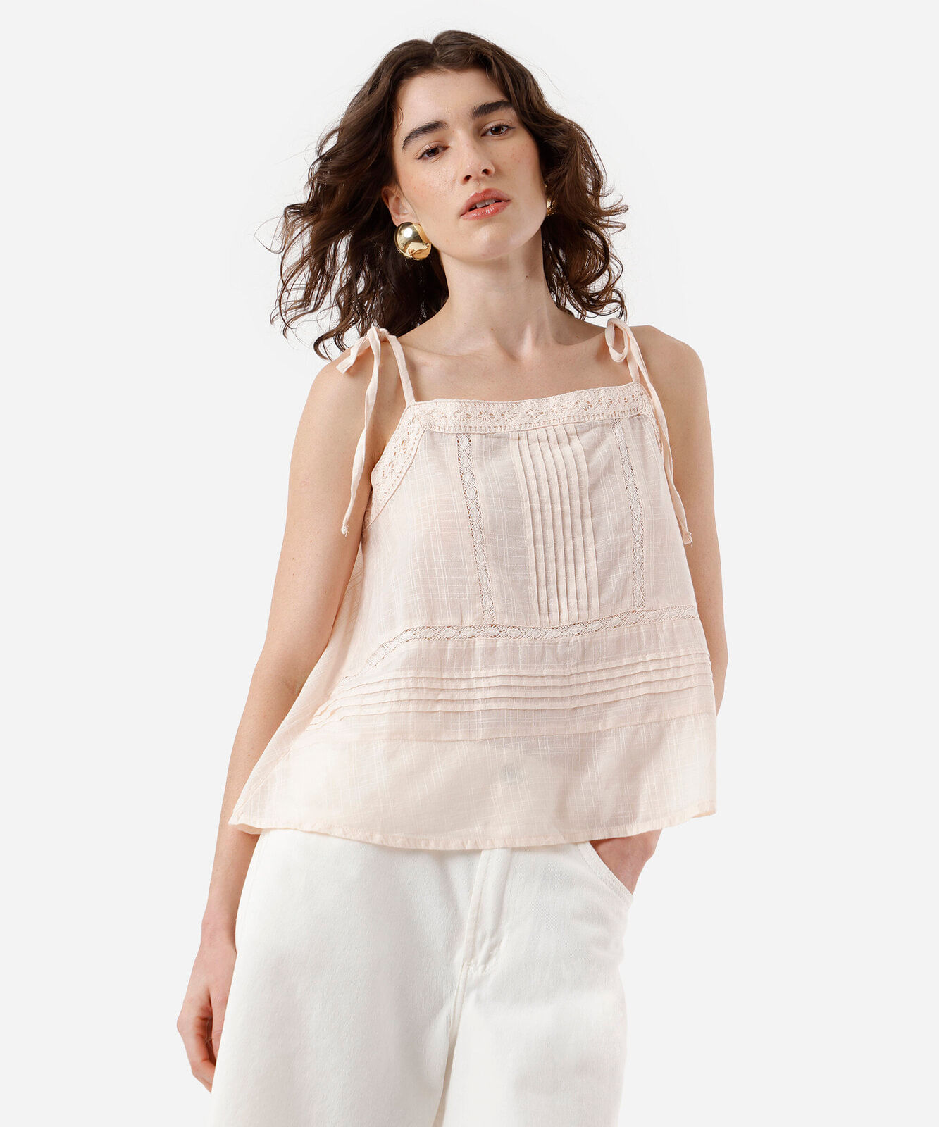 Criada para treinos que pedem leveza, ventilação e liberdade de movimento. Confeccionada em tecido mesh de poliéster com tecnologia DRYACTION, que proporciona secagem rápida e maior controle da umidade. Caimento levemente amplo e a barra arredondada com comprimento alongado garantem conforto e mobilidade durante a prática. Nas costas, o detalhe transpassado nas alças adiciona estilo ao visual esportivo. Já o logo ton sur ton reforça o acabamento minimalista da peça.