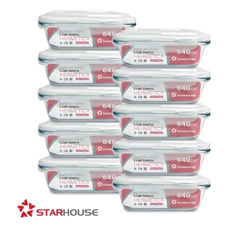 Kit 10 Potes Vidro 640ml Hermético Marmita Forno Refratário Star House