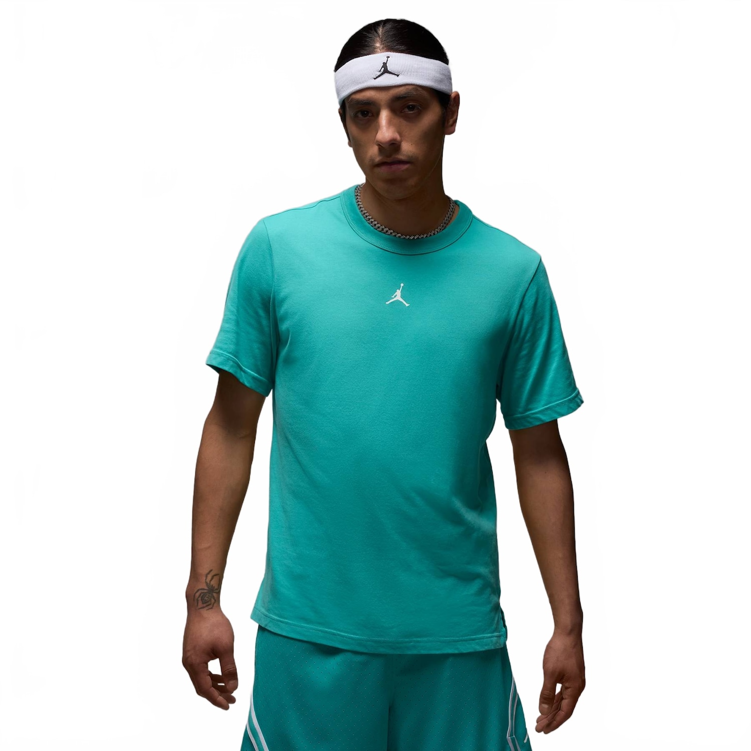 Aqui está uma camiseta feita para você ir atrás... Mais do que quer. É feita de uma mistura de algodão macio aprimorada com tecnologia que absorve o suor para ajudar a mantê-lo fresco desde o despertar até o relaxamento.BenefíciosTecnologia Nike Dri-FIT absorve o suor da sua pele para evaporação mais rápida, ajudando a manter você seco e confortável.Jumpman minimalista impresso em tela mantém sua aparência simples.Detalhes do Produto57% algodão e 43% poliésterLavável à máquinaImportado Menos