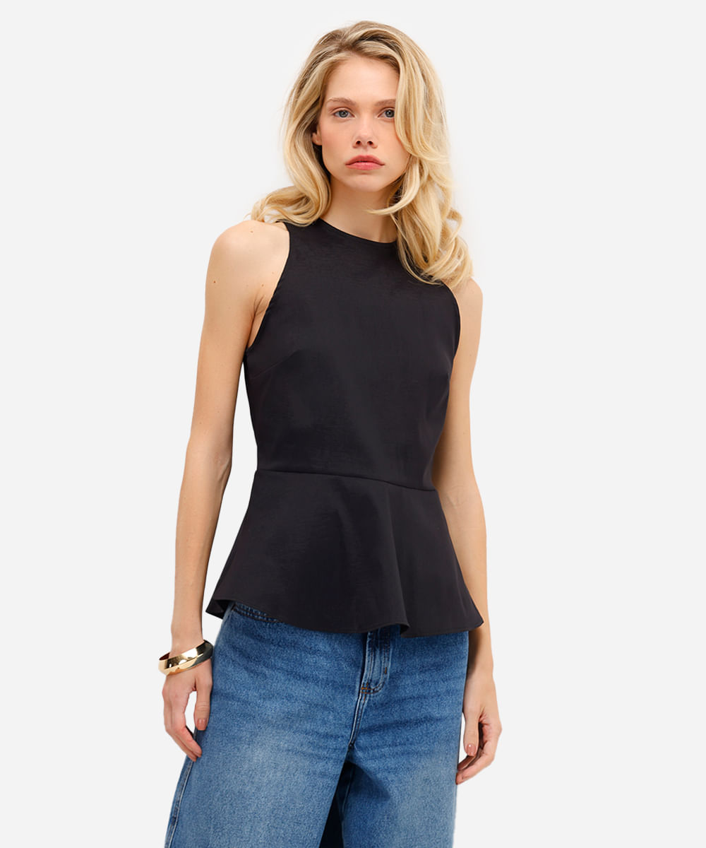 blusa feminina decote redondo com peplum preta