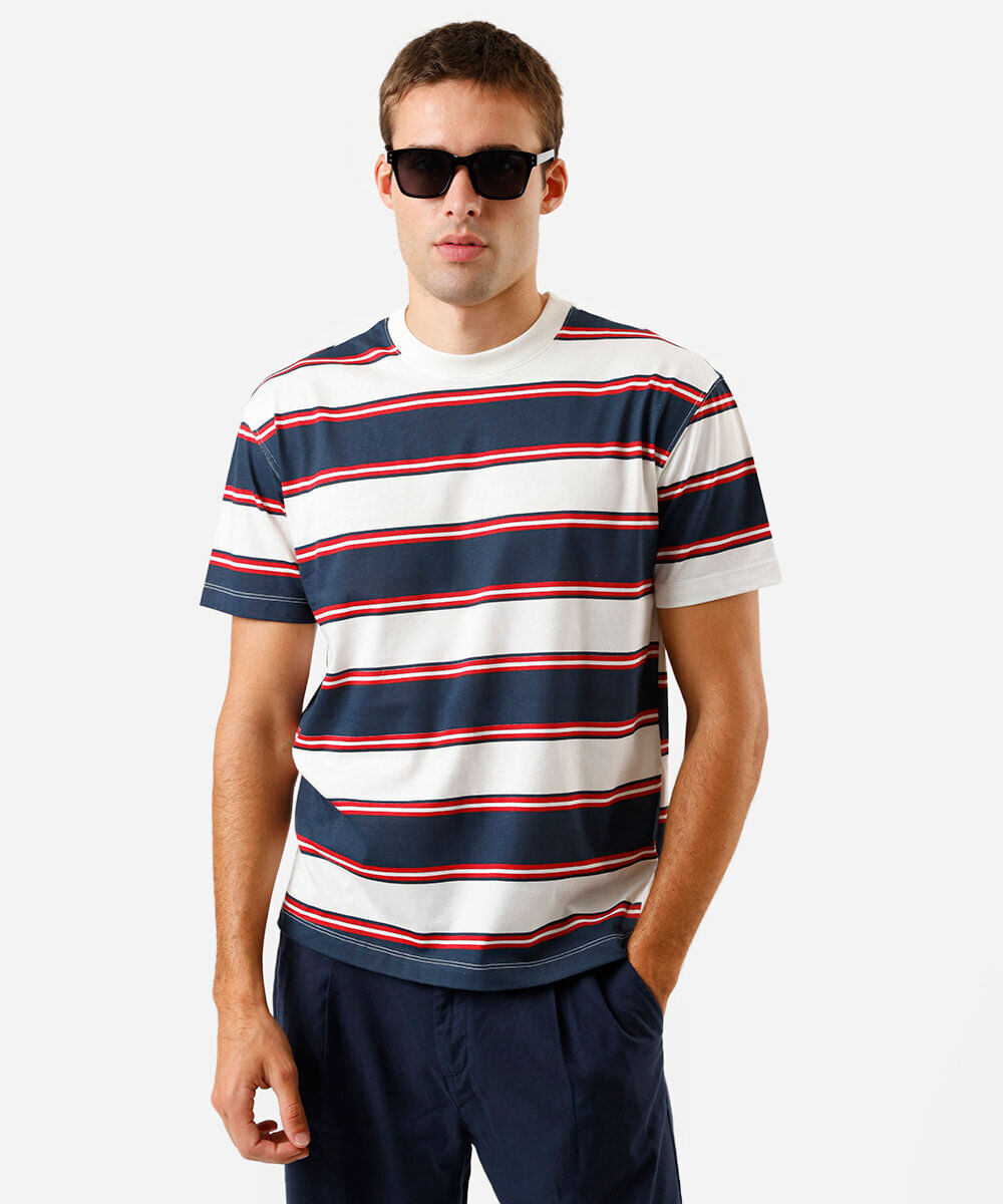 camiseta masculina box fit listrada azul