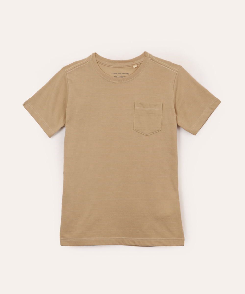 camiseta de algodão infantil com bolso bege