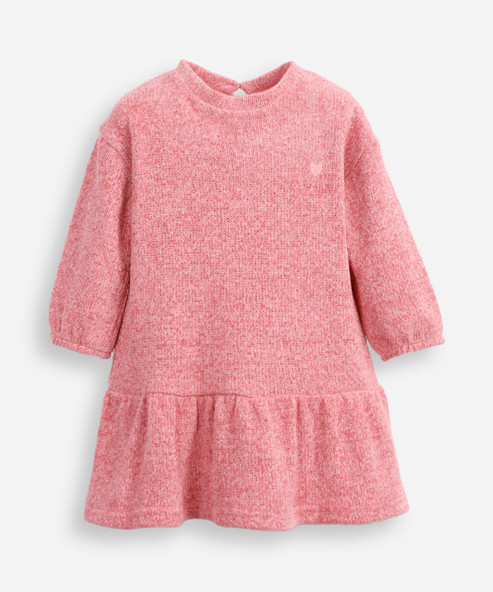 vestido infantil manga bufante com lurex rosa