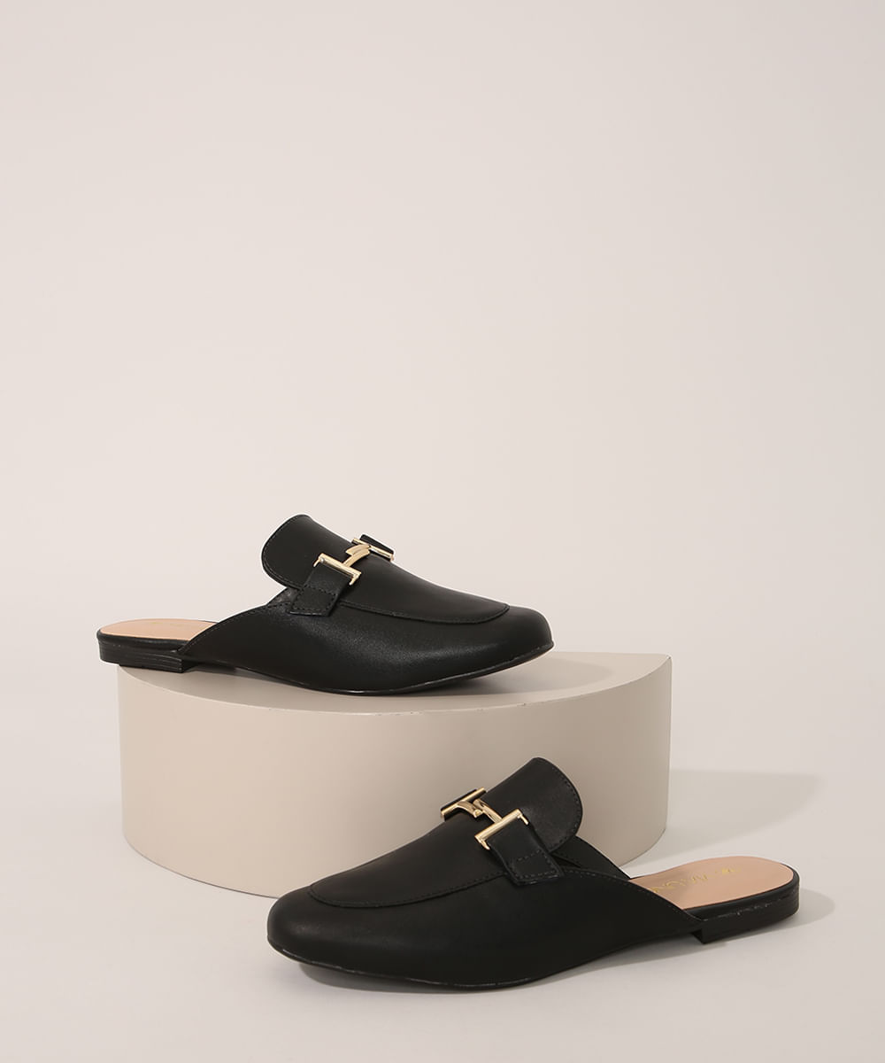 Mule Feminino Via Uno com Fivela Preto