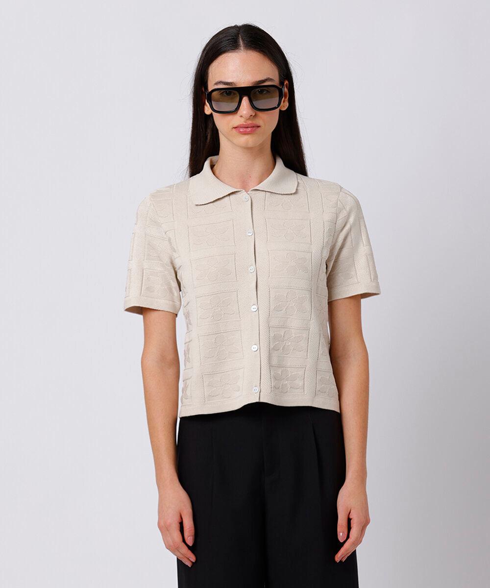 camisa feminina de tricot floral mindset bege