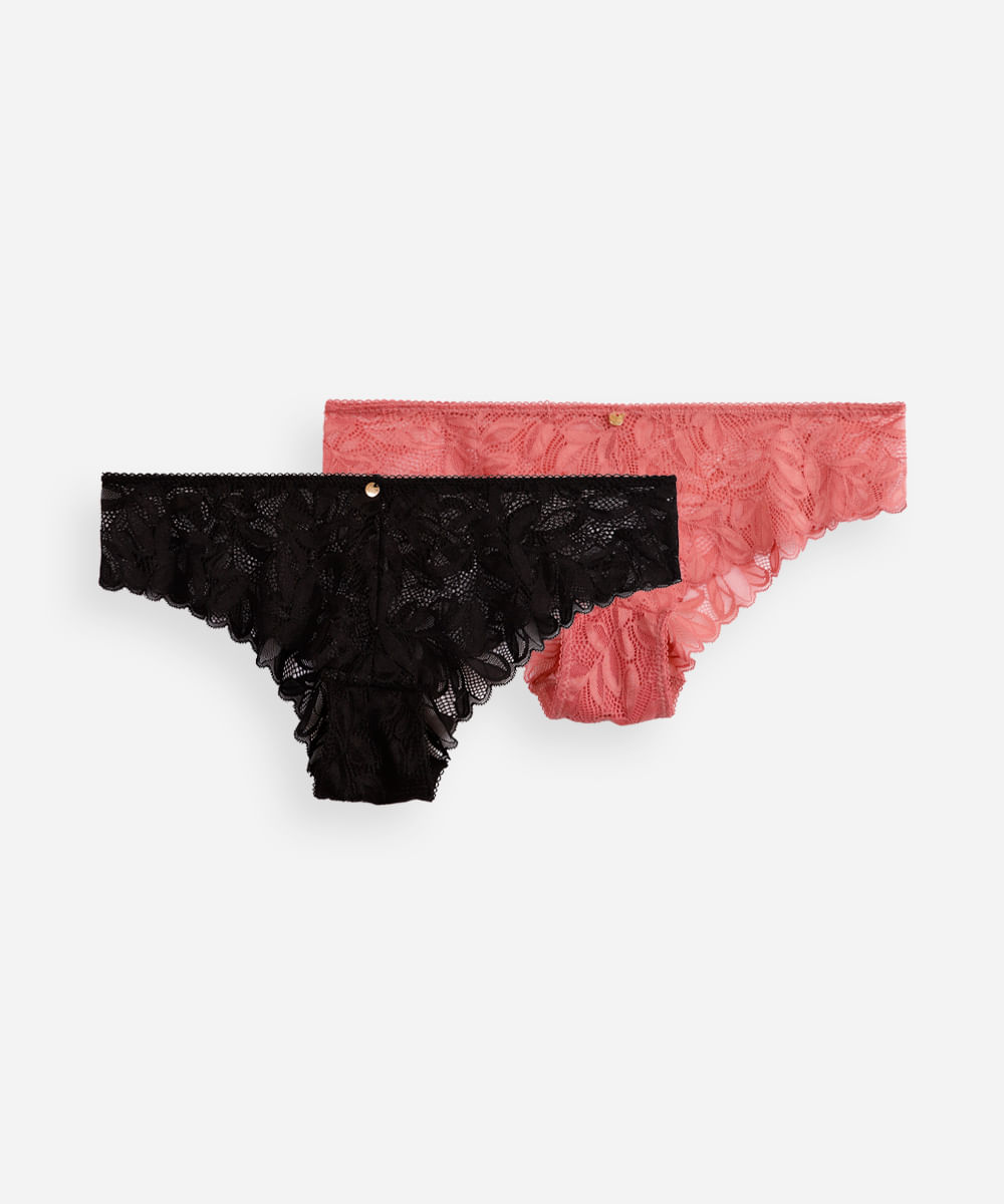 kit de 2 calcinhas caleçon renda floral colorido