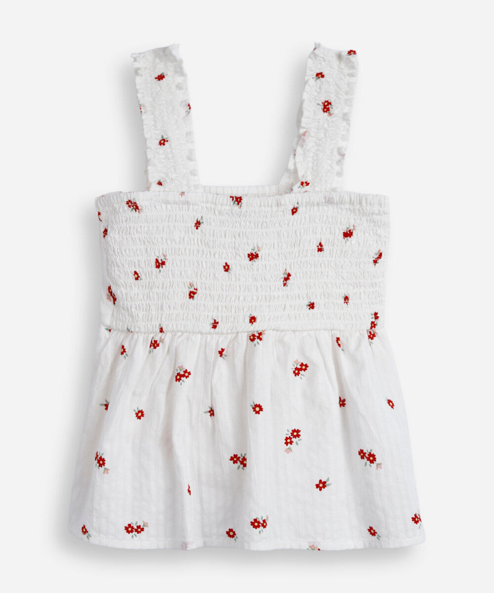 blusa infantil de algodão com franzida floral off white
