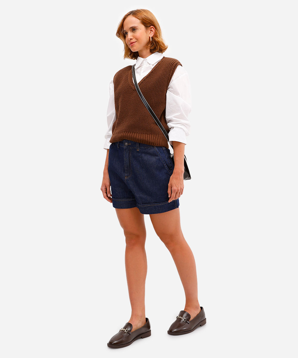 short feminino de alfaiataria jeans azul