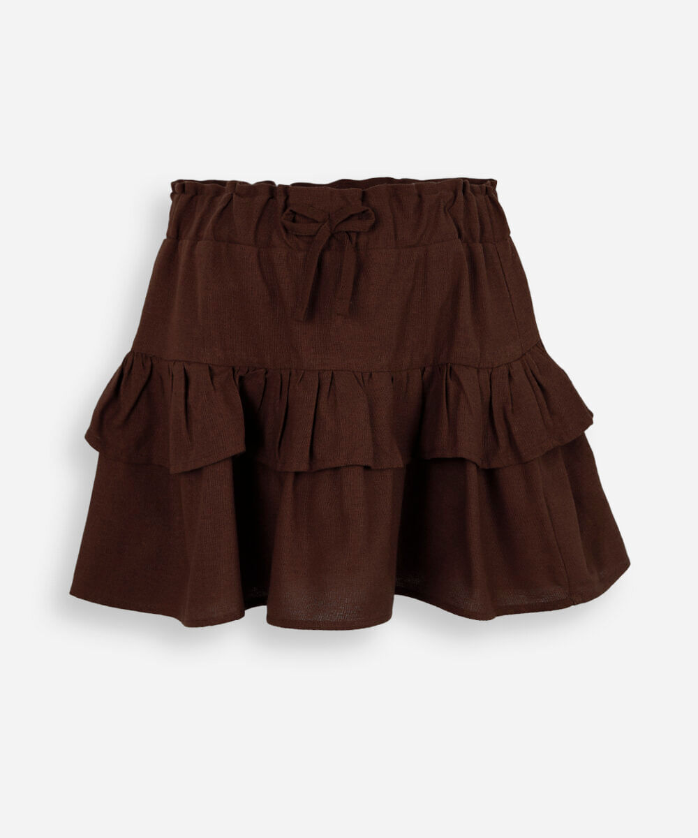 saia curta infantil com linho e babado marrom