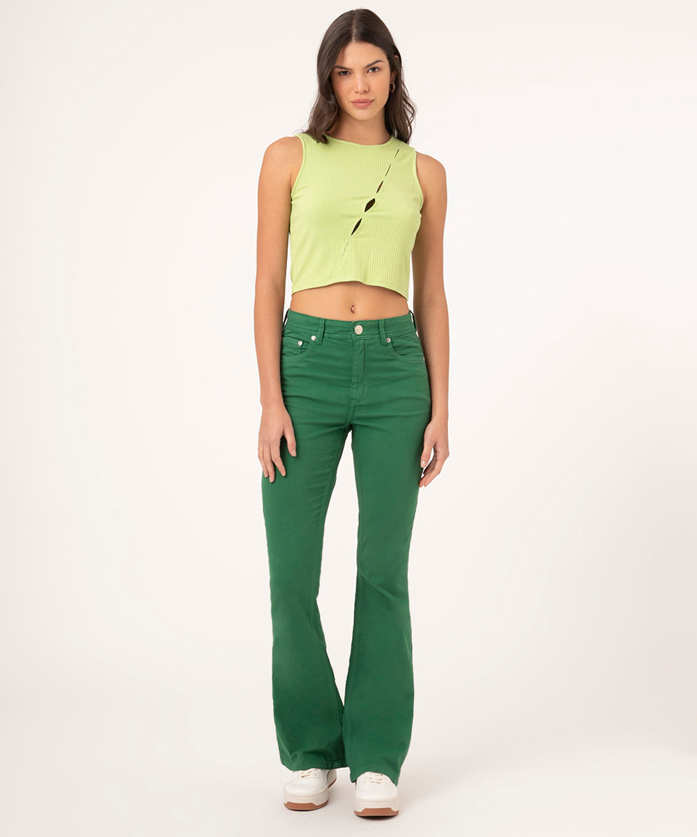 calça flare color cintura média verde escuro