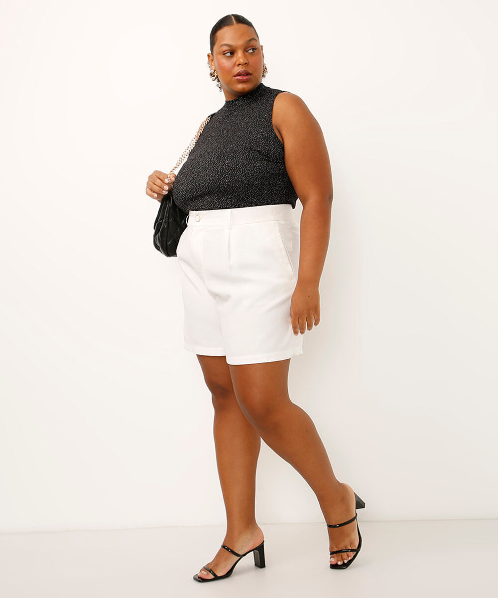 short de alfaiataria com pregas plus size off white