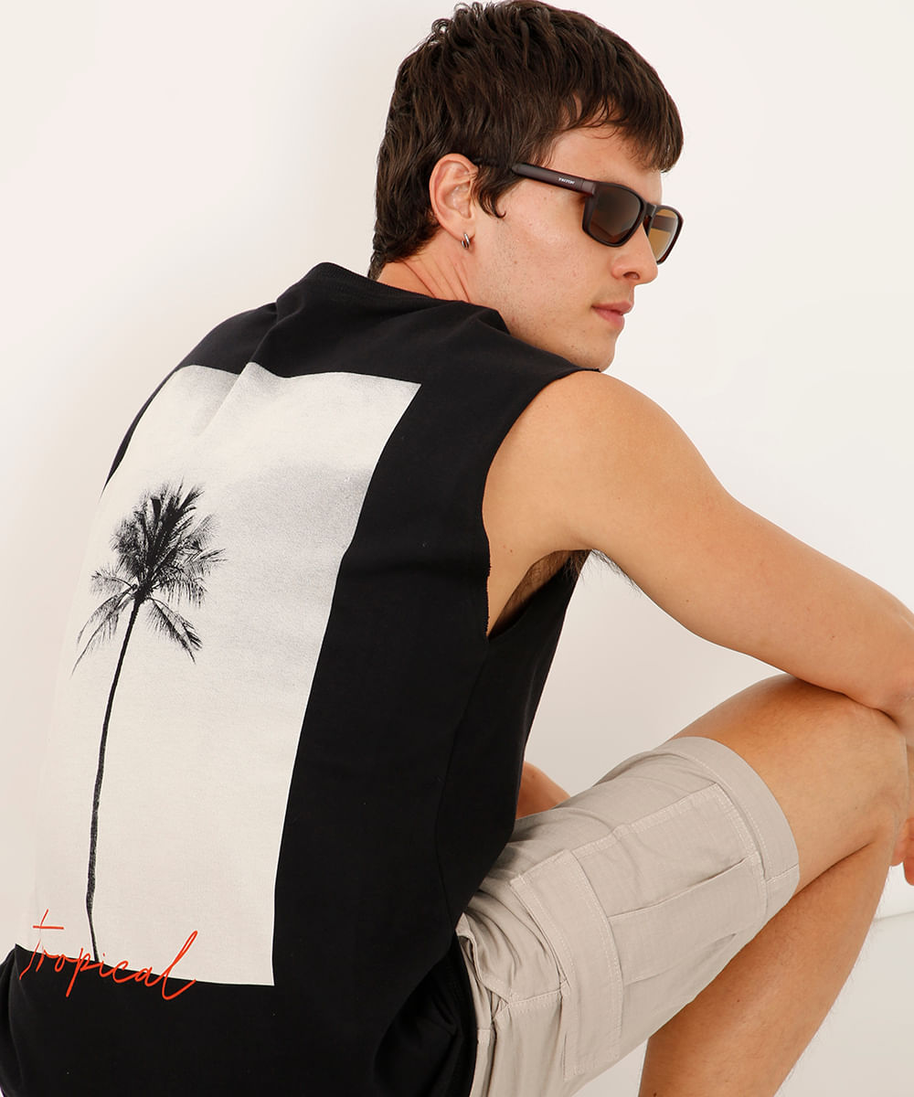 regata machão de algodão tropical preta