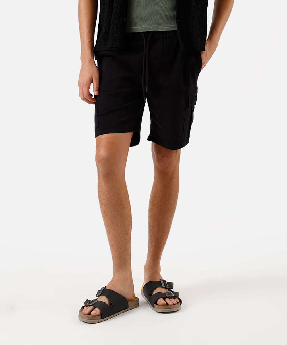 bermuda cargo masculina de sarja cós elástico preta