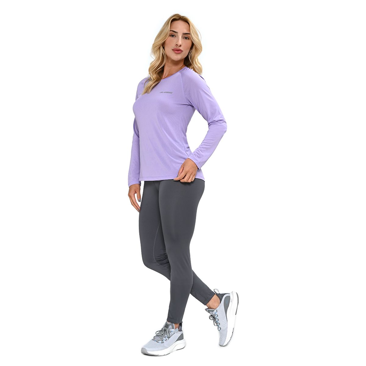 Legging feita em malha de poliéster e elastano, m... Maisacio e com capacidade de absorção de suor, mantendo seu corpo seco, além de proteger contra os raios UVA e UVB. Possui modelagem especial com reforço no entrepernas para não marcar e tecido de alta gramatura que não apresenta transparência, para que você se sinta à vontade. Seu fit com cintura alta dá maior sustentação, as costuras flatlock com um toque macio garantem o conforto, pois não geram atrito contra a pele. O silk metálico em silicone acompanha o movimento de tecido. 90% Poliéster e 10% Elastano. Dry Action: Tecnologia que ajuda na absorção e eliminação do suor. É ideal para todo tipo de esporte, já que evita a aderência do tecido ao corpo, facilitando qualquer tipo de movimento. Solartech: Tecnologia desenvolvida para proteger o corpo dos raios UVA e UVB, que são nocivos à pele. Menos