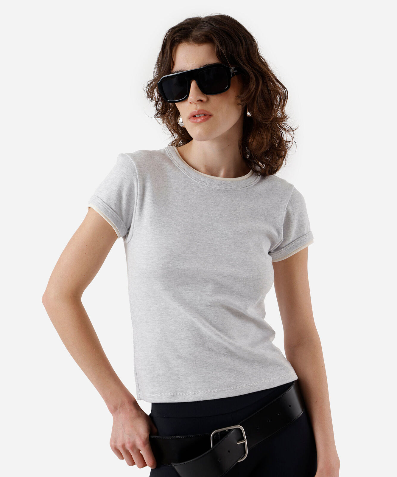 blusa feminina com algodão bicolor cinza