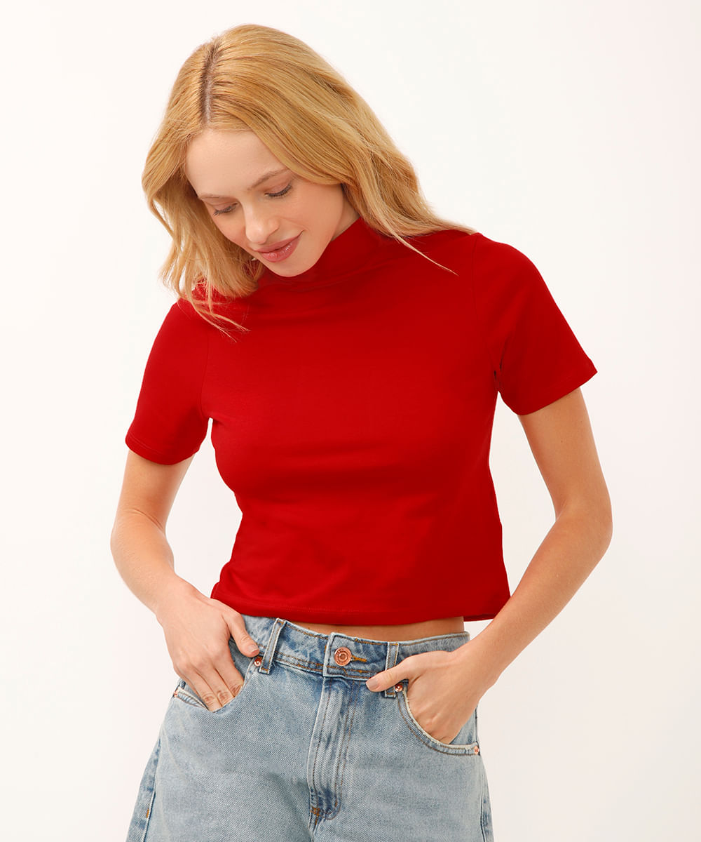 blusa básica manga curta gola alta vermelha