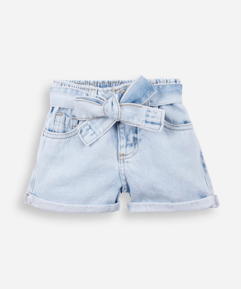 short clochard infantil jeans com faixa azul