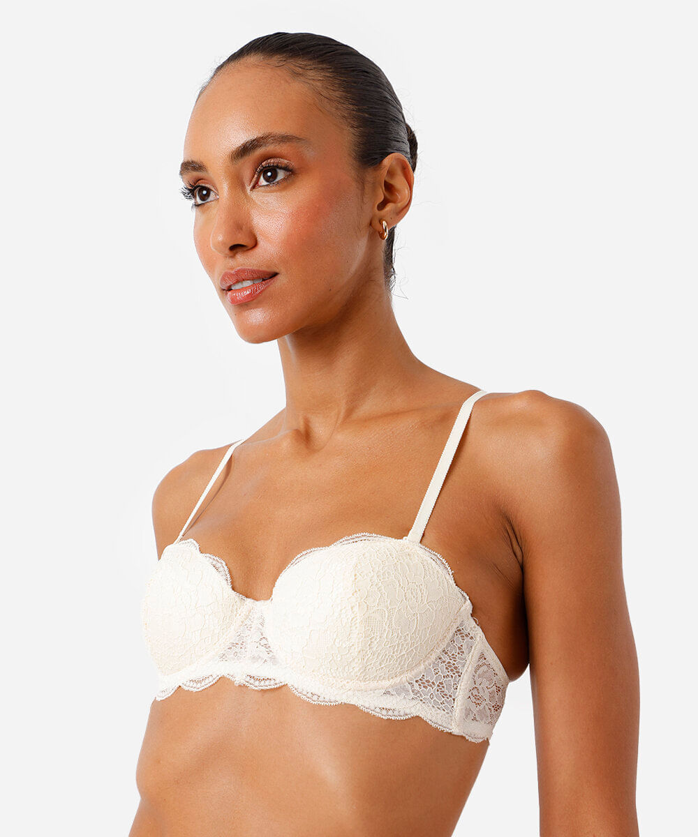 sutiã meia taça com alça removíveis e renda bege