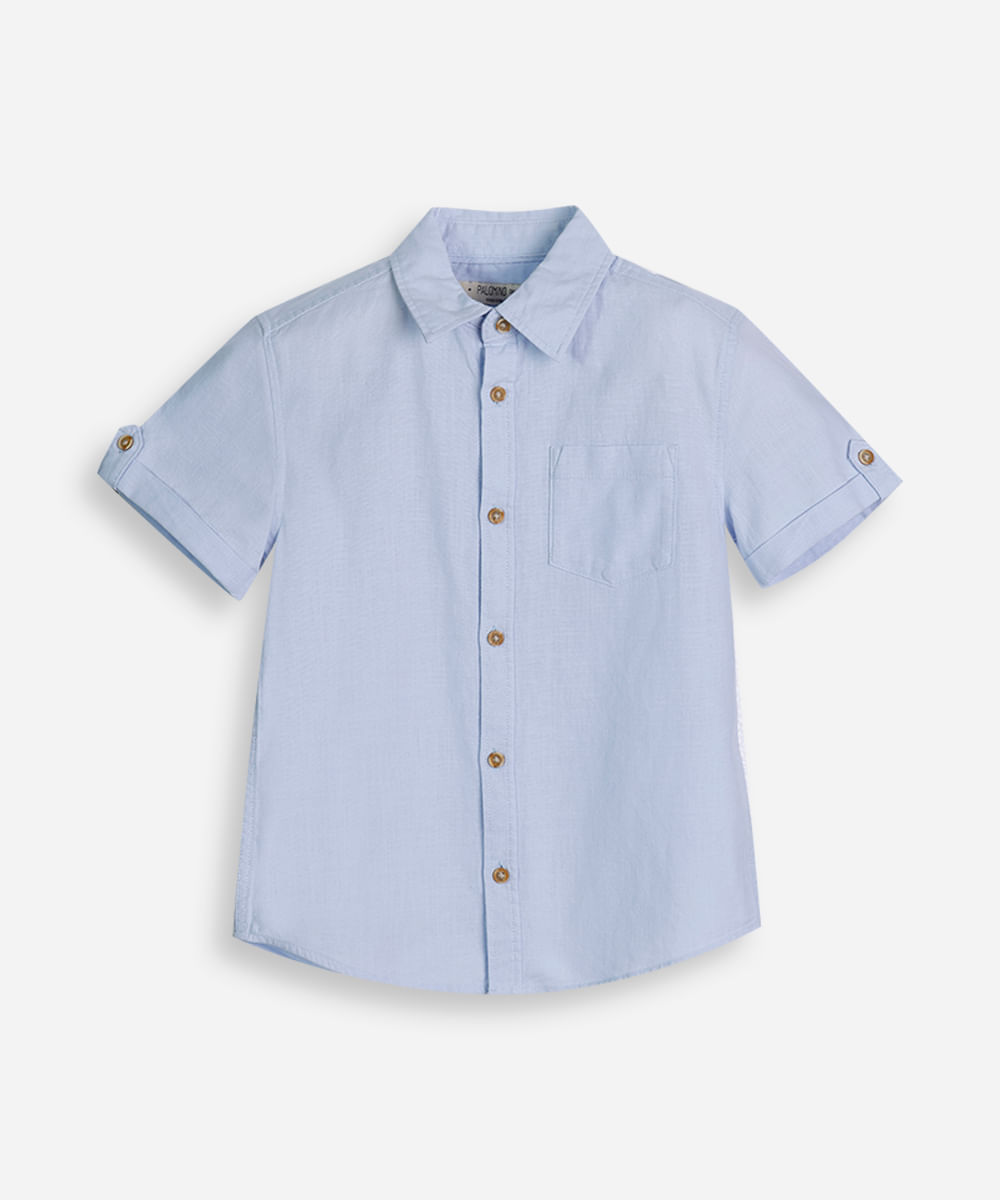 camisa de algodão infantil manga curta com bolso azul