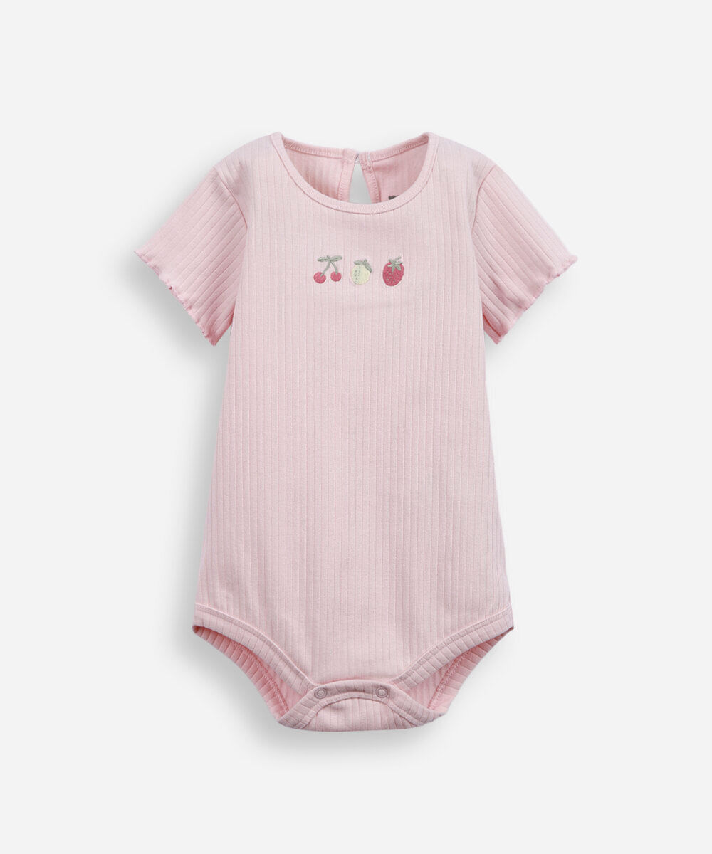 body manga curta de algodão frutinhas rosa