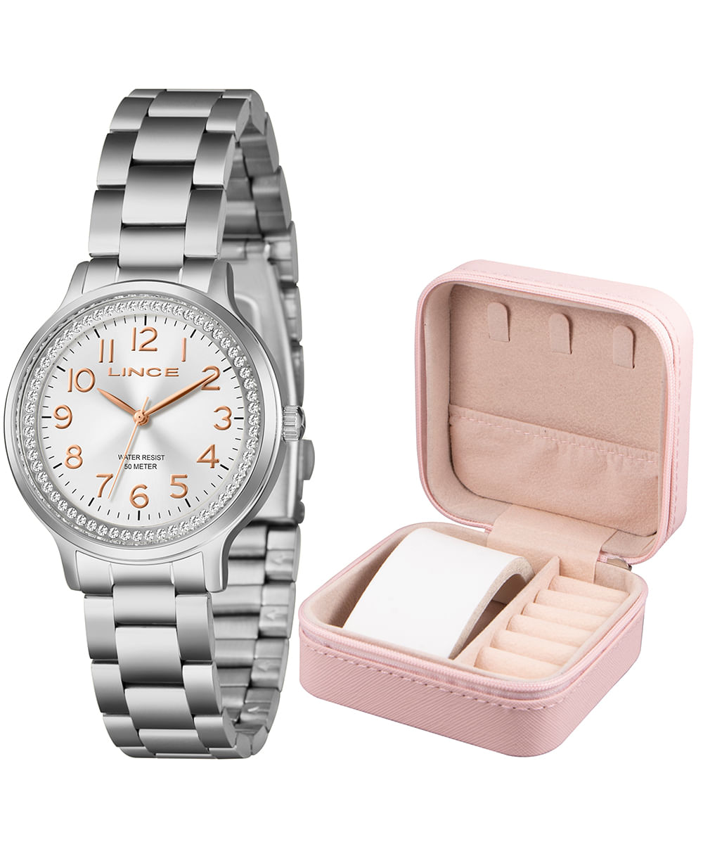 kit relógio feminino lince analógico lrmh261l36 s2sx pj prateado