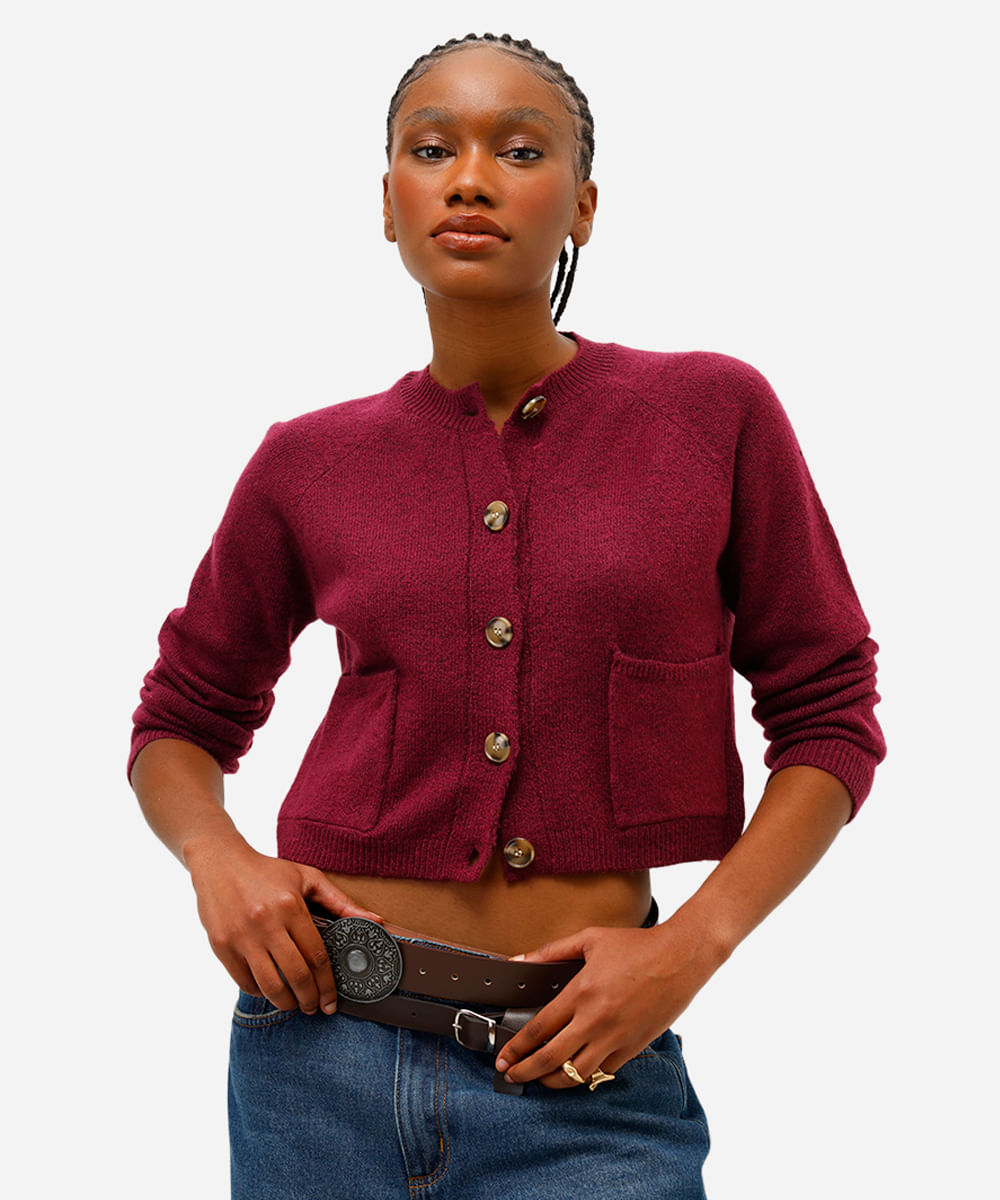cardigan feminino de tricot com bolsos vinho