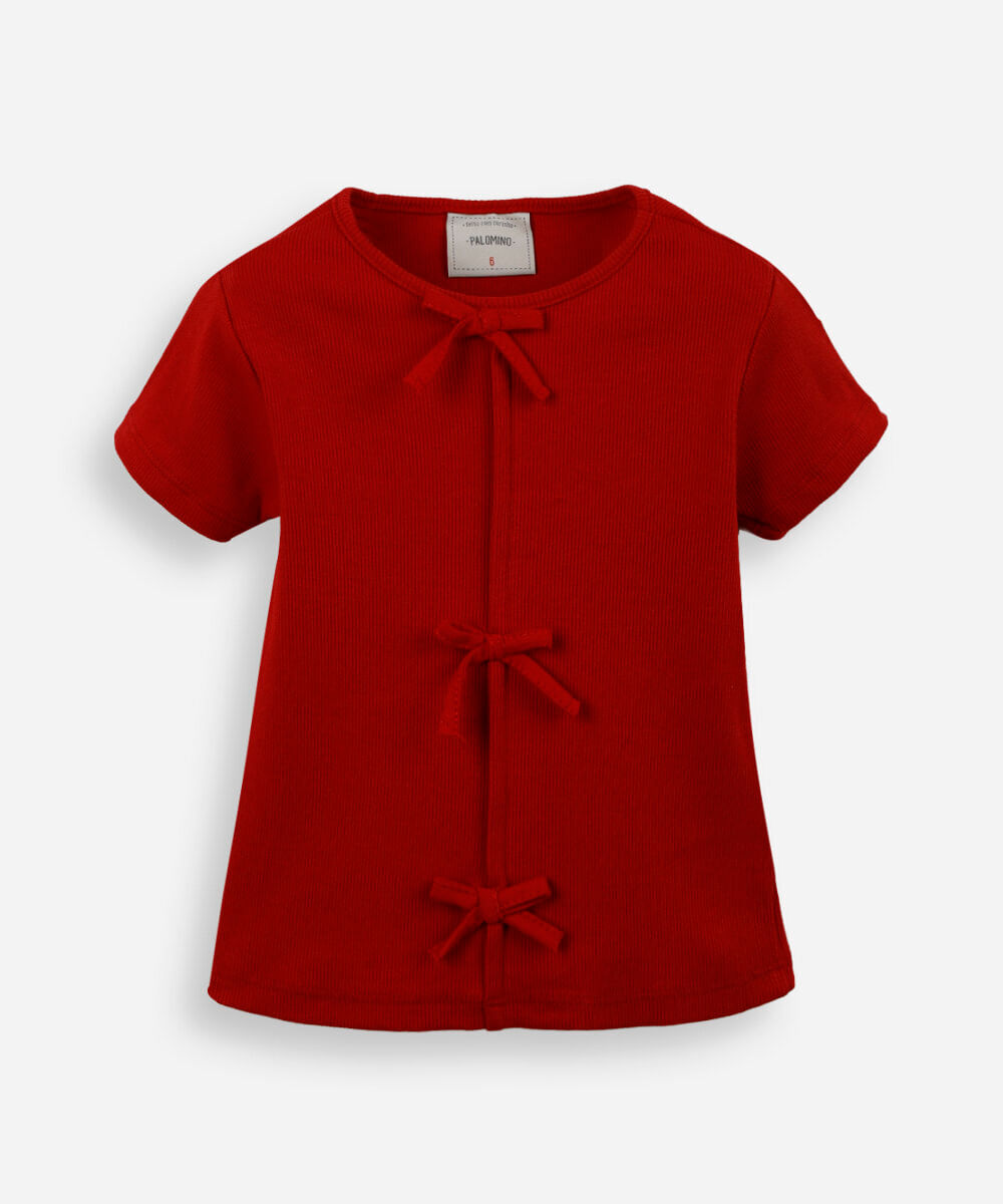blusa infantil de algodão com laços canelada vermelha