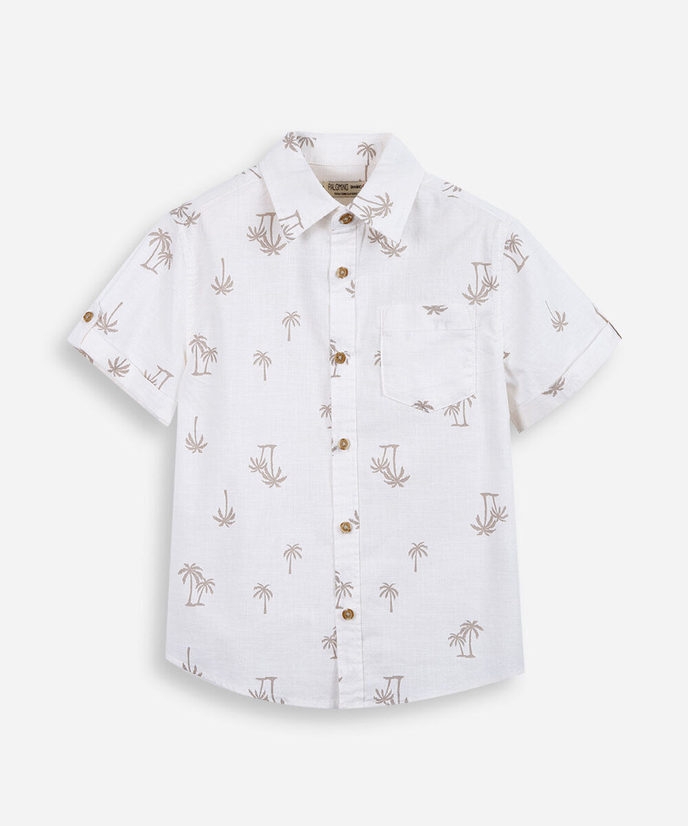 camisa infantil de algodão coqueiros bege