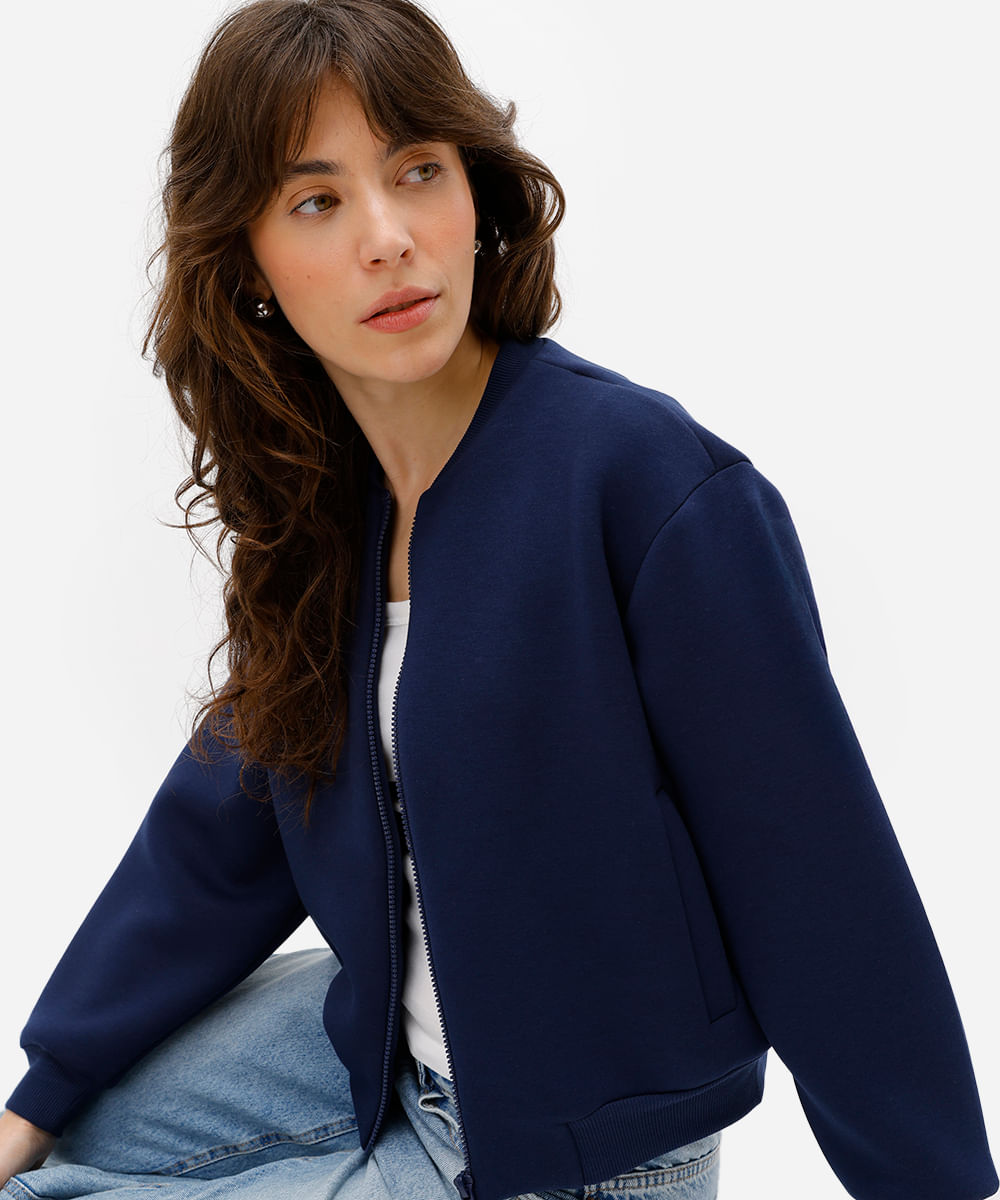 jaqueta bomber feminina de neoprene - marinho_escuro