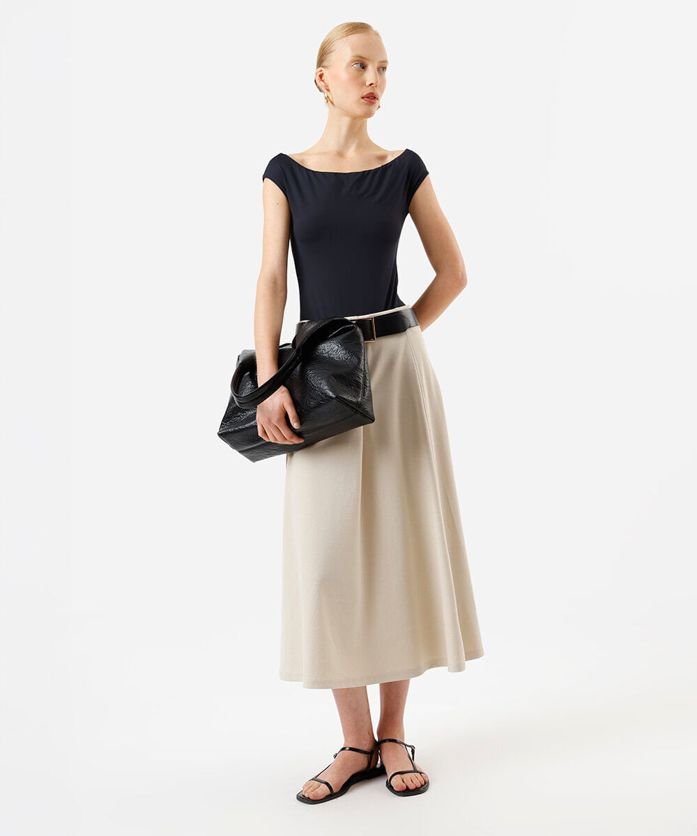 saia midi feminina de alfaiataria com pregas bege