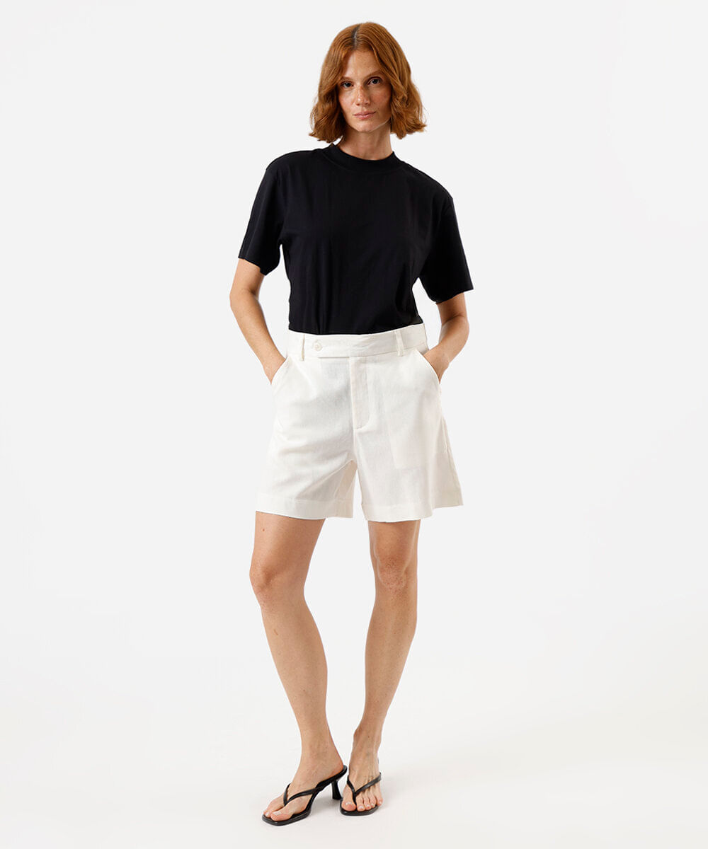 Adicionar detalhes sob medida a este shorts garante que ele seja tudo menos básico. O tecido de algodão é macio e mantém sua forma, fazendo com que os dardos na frente se destaquem muito mais. Além disso, o elástico no cós traseiro ajuda a mantê-los confortáveis enquanto você se move ao longo do dia.BenefíciosO caimento solto nas pernas conferem uma sensação descontraída e confortável.Fechamento de zíper combinado com elástico na parte de trás do cós garantem que este shorts permaneça no lugar.Detalhes do Produto68% algodão, 28% nylon e 4% elastanoLavável à máquinaImportado