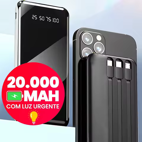 Power Bank 20000mAh com Lanterna e Design Favo de