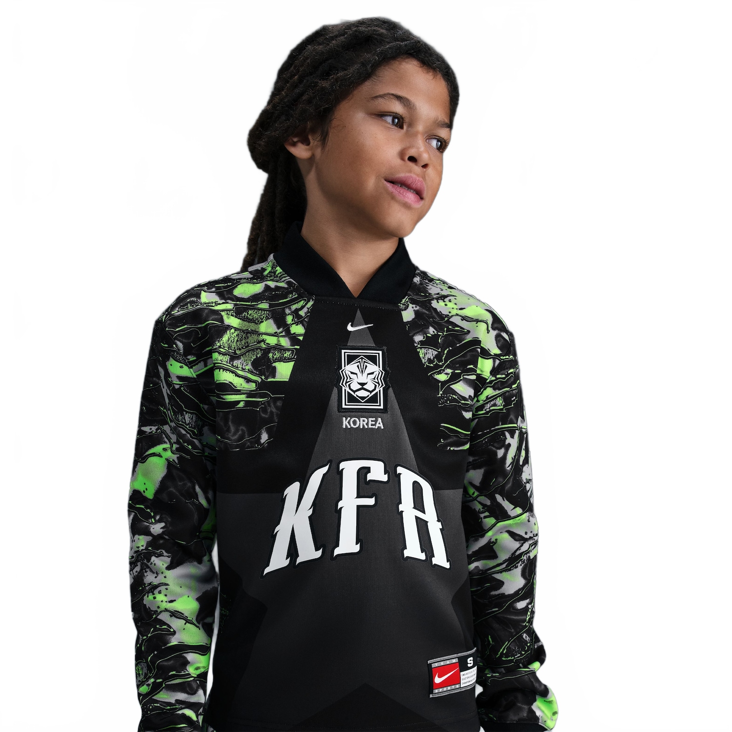Os goleiros merecem seu momento de destaque. Porta... Maisnto, considere esta a calçada da fama deles. Uma coleção que distribui estrelas a cada bloqueador de chutes que tem coragem de ficar entre as traves. Junte-se a nós para homenagear esses atletas únicos com esta camisa da Coreia, de caimento clássico. Benefícios A gola e os punhos canelados ajudam a manter a camisa no lugar. A tecnologia Nike Dri-FIT afasta o suor da pele para uma evaporação mais rápida, ajudando você a permanecer seco(a) e confortável. Menos