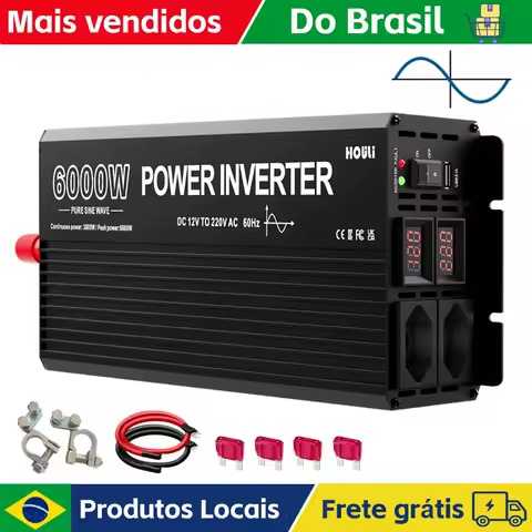 HOULI inversor 24v 220v onda pura 2000W 3000W 4000W 5000W 6000W 60hz 12v 24v pra 220v Senoidal Pura Estoque No Brasil Frete Grátis