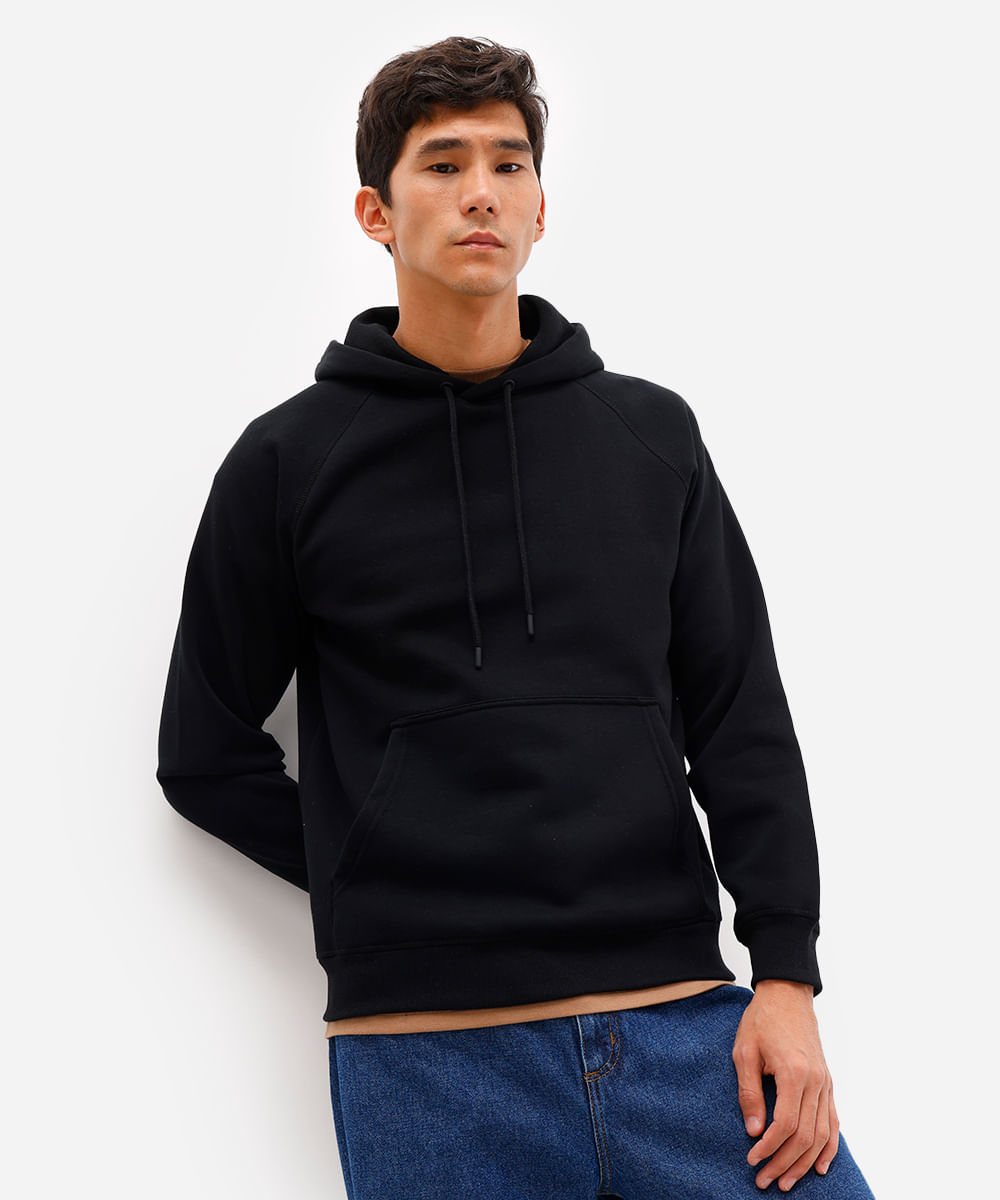 blusão básico masculino de moletom com capuz preto