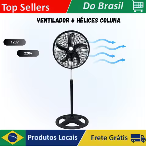 Ventilador de Coluna Pedestal Silencioso 40cm com 6 Hélices - Cores Preto e Branco - 110V/220V
