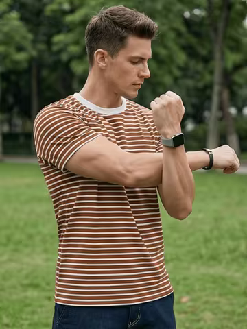 Camiseta Street Style para Homem | Modelo Listrado Atemporal | Combinável com Jeans e Shorts-0973
