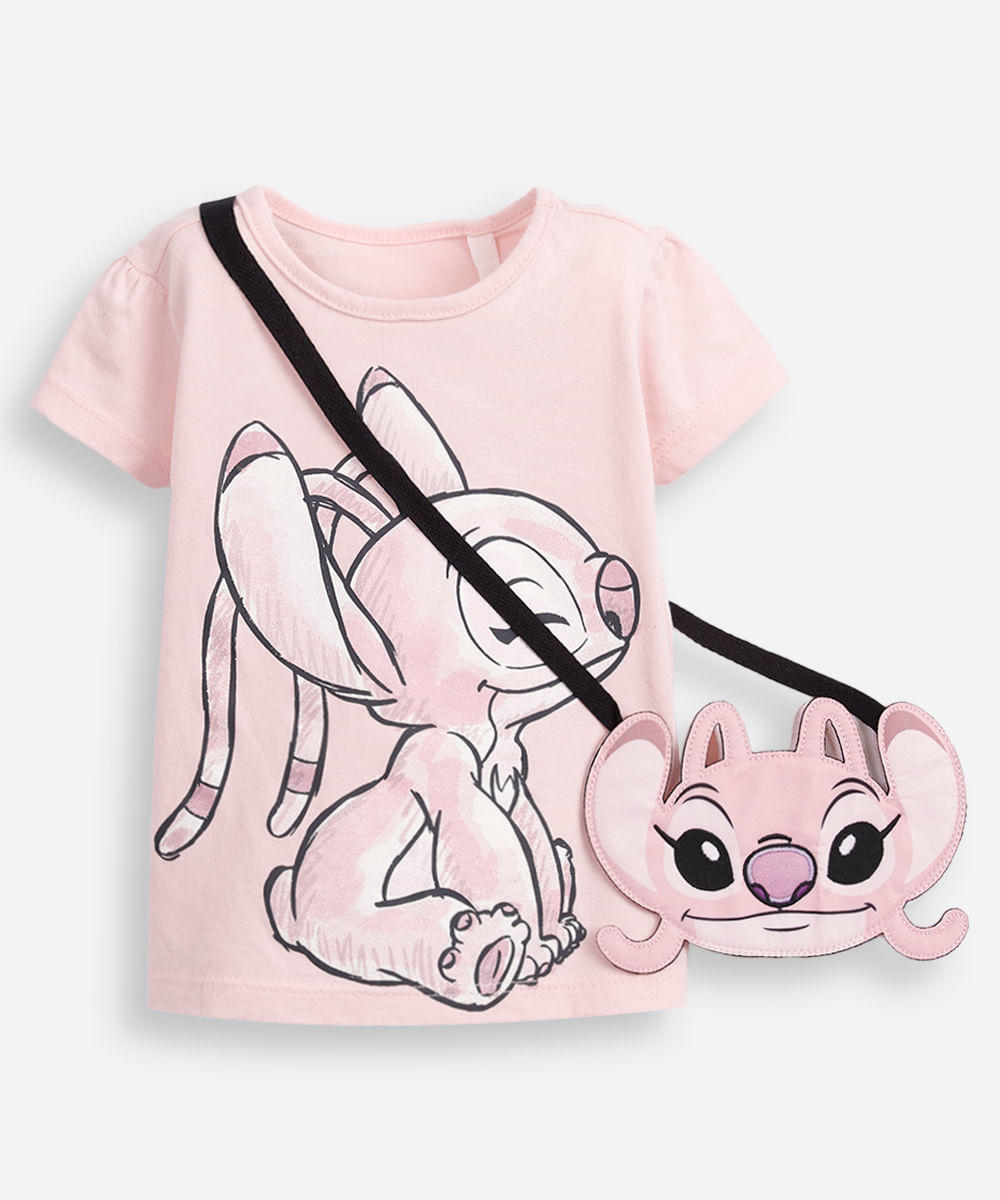 Blusa infantil com bolsinha angel rosa