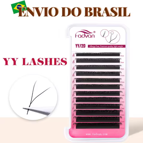 FADVAN YY Lashes 1 Caixas D Curl mix(8-14mm) YY Shape Lashes Black Premade Volume Fans [Shipping from Brazil]