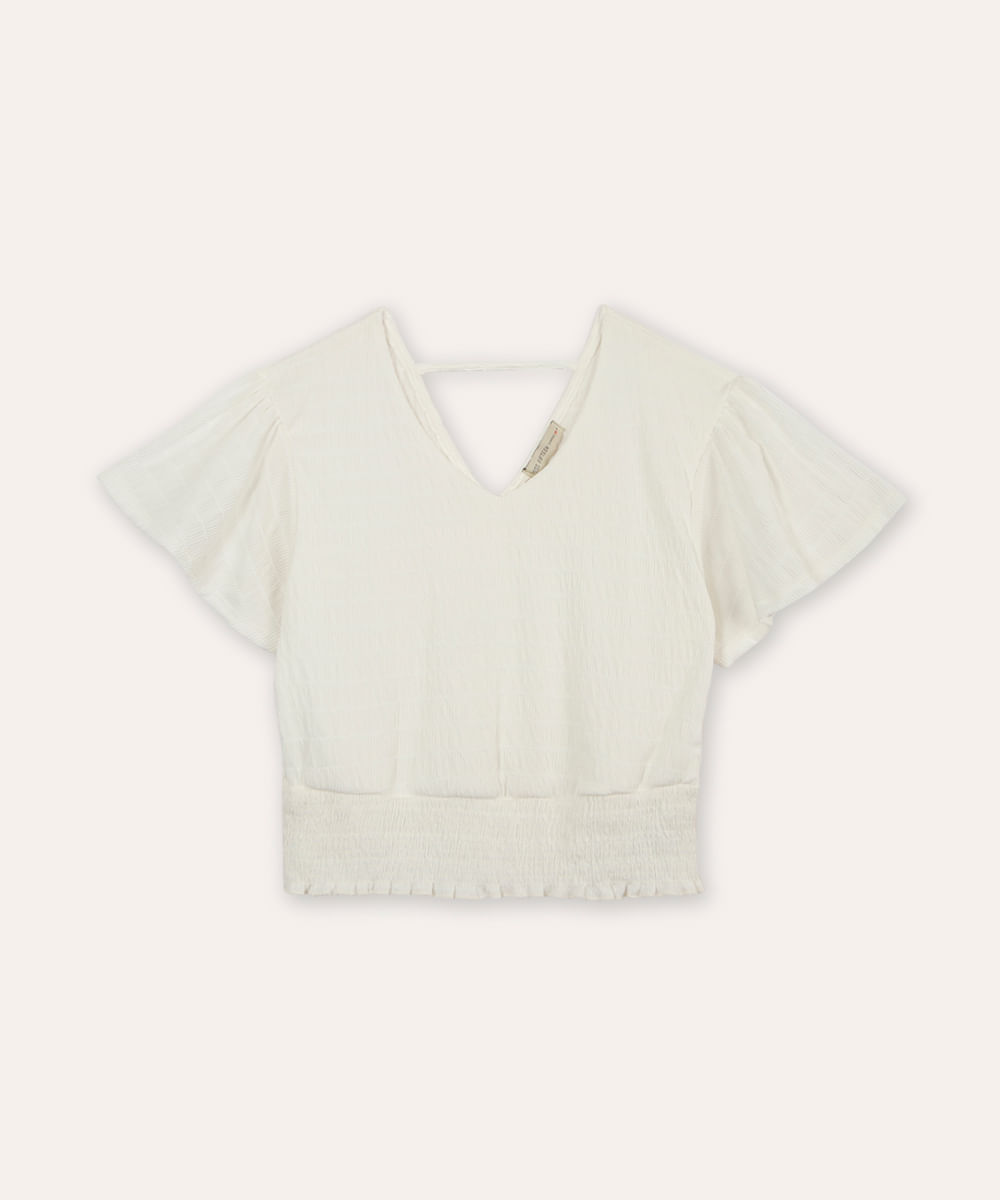 cropped juvenil com lastex texturizado off white