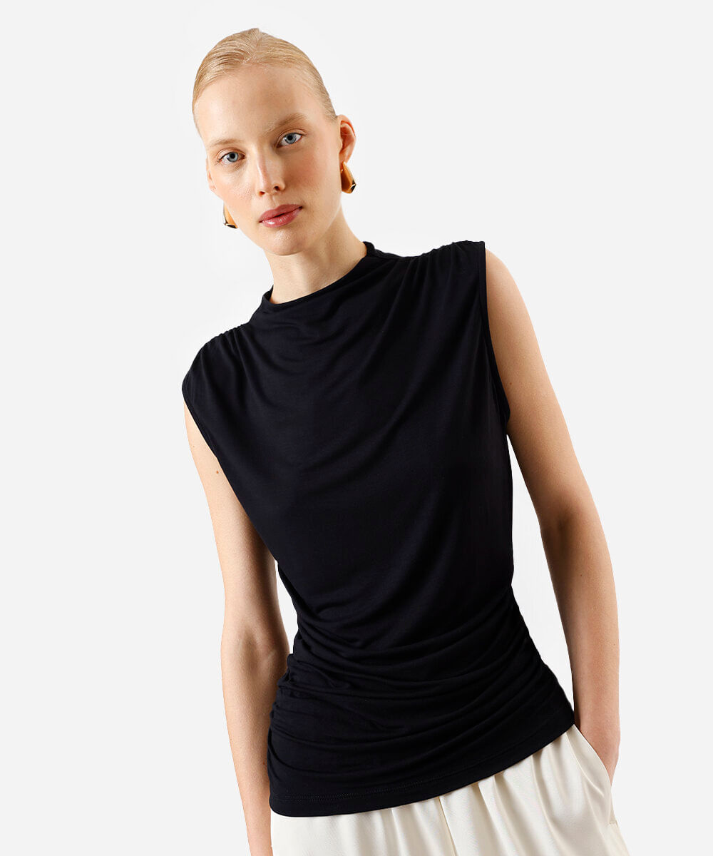 regata feminina de viscose com franzidos preta