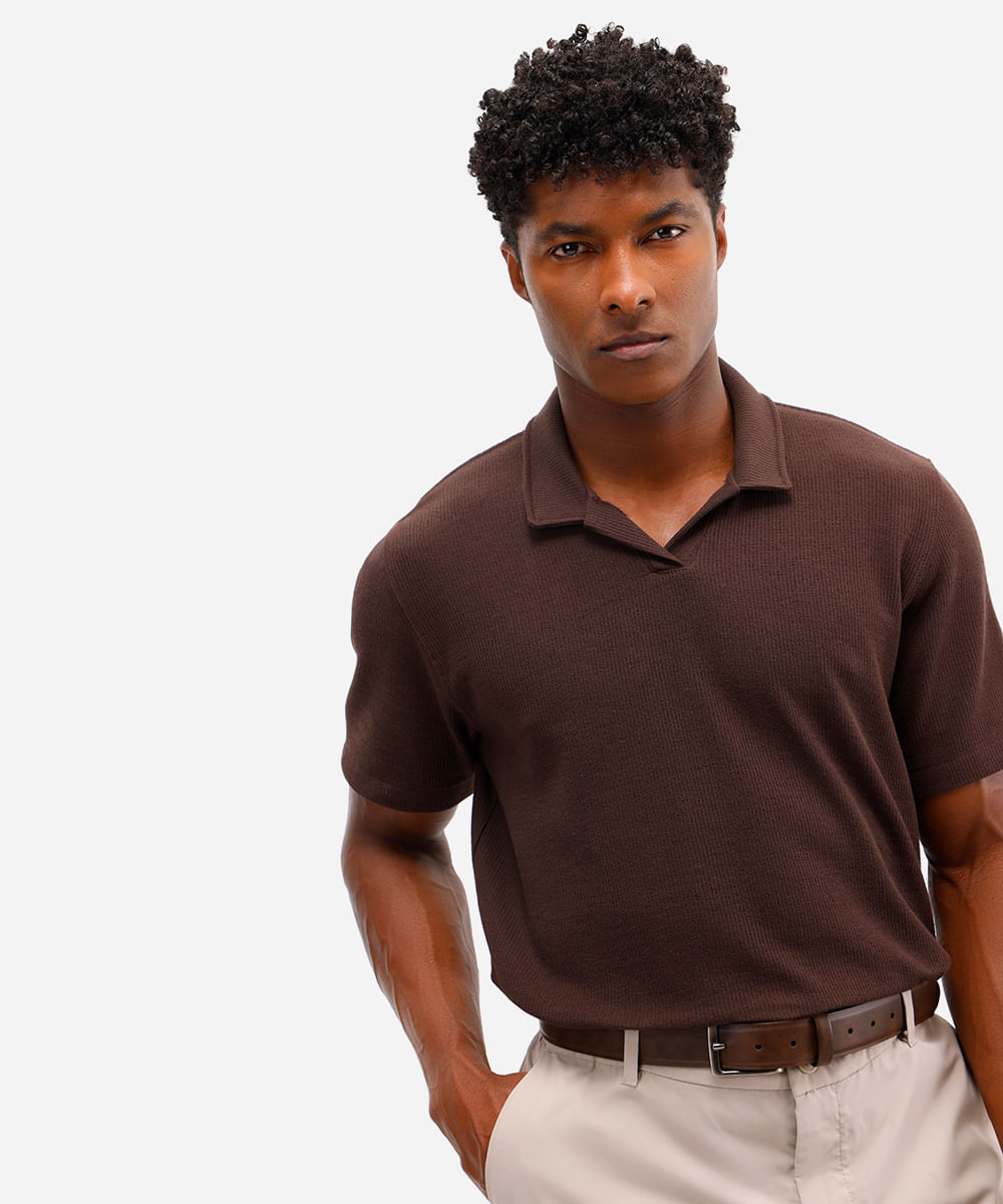 polo comfort masculina texturizada marrom
