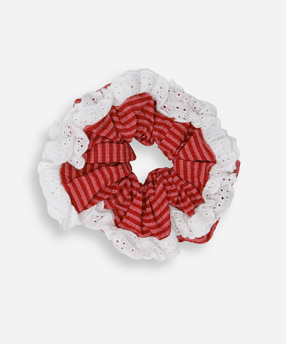 elástico de cabelo srunchie com laise listrado colorido