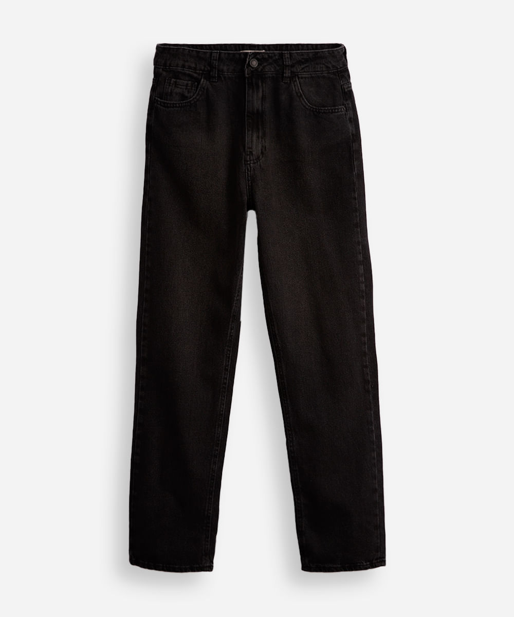 calça reta juvenil jeans preta