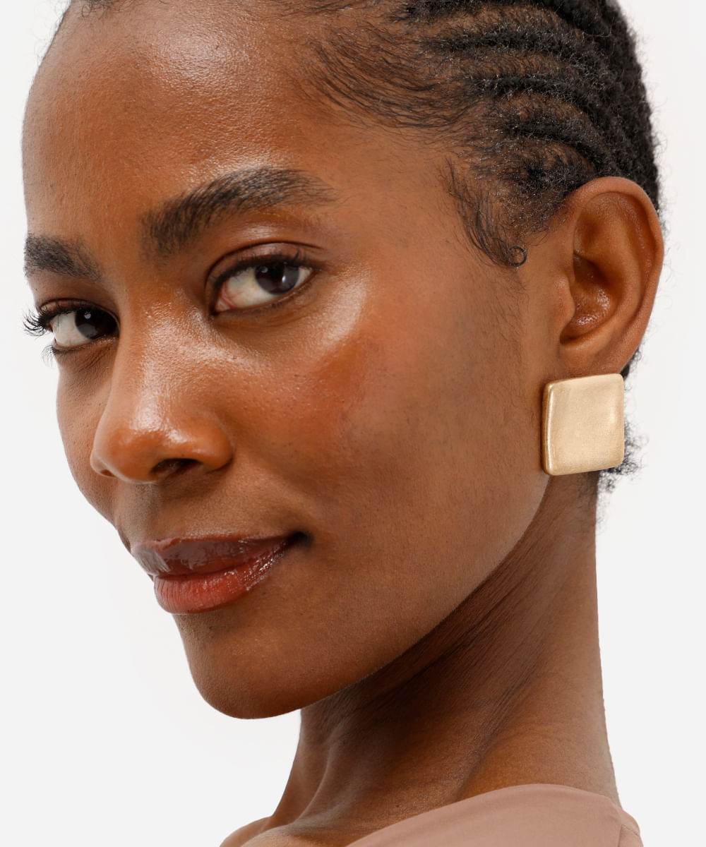brinco quadrado côncavo dourado
