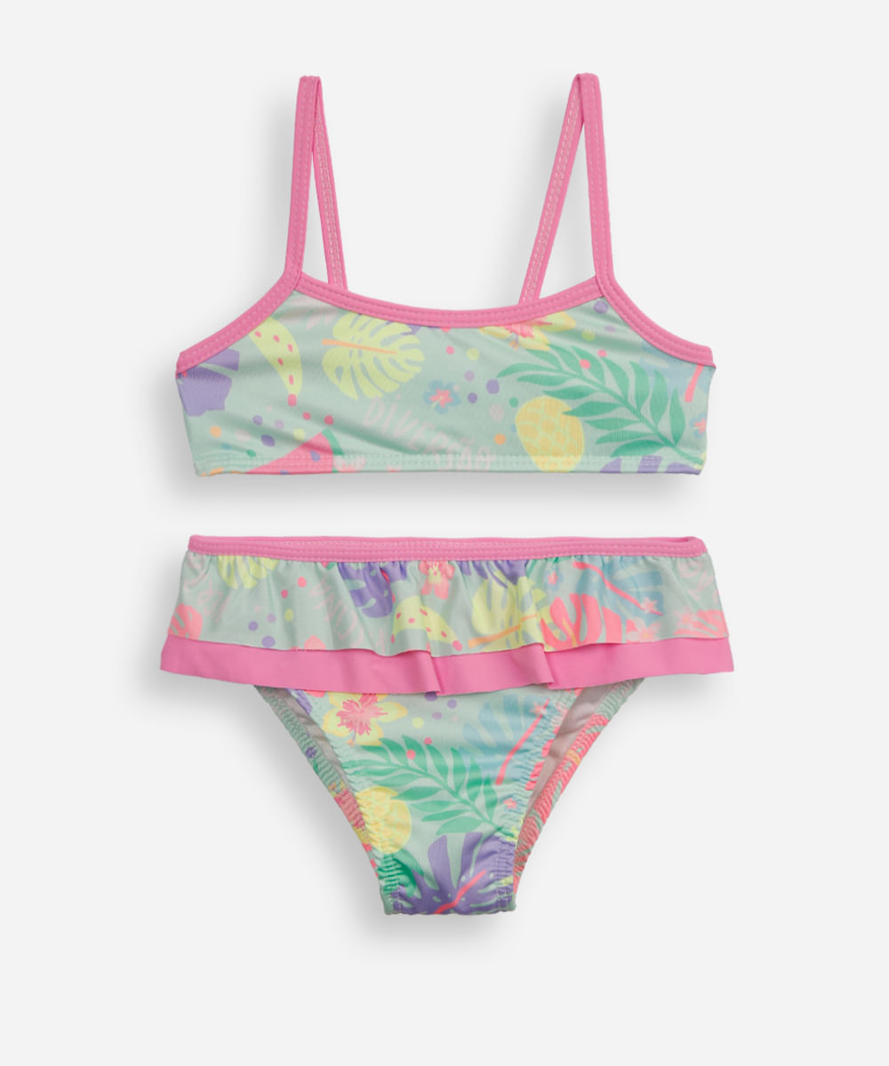 biquíni infantil com babado folhagem verde