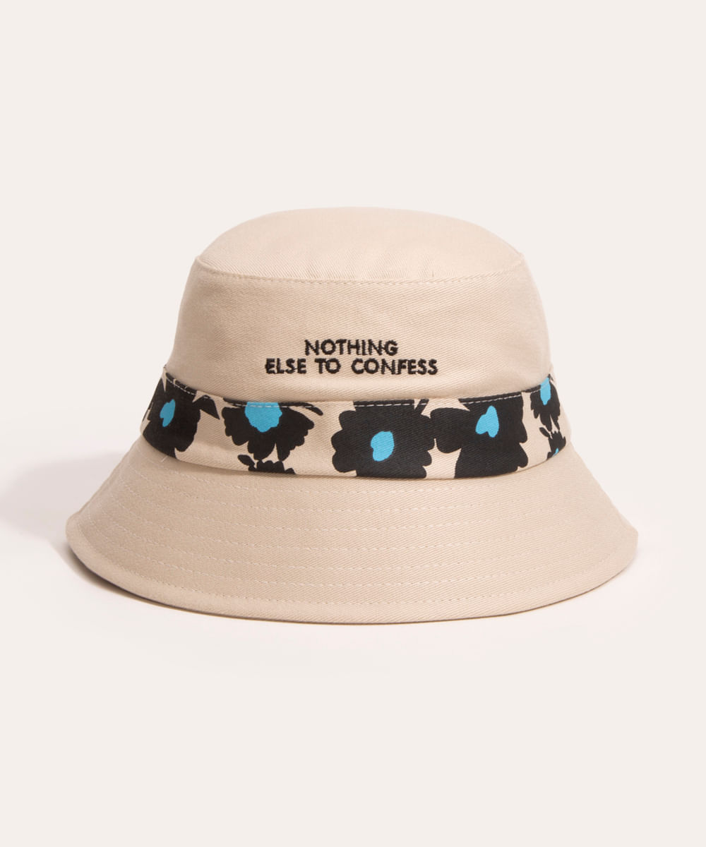 chapéu bucket de sarja floral bege